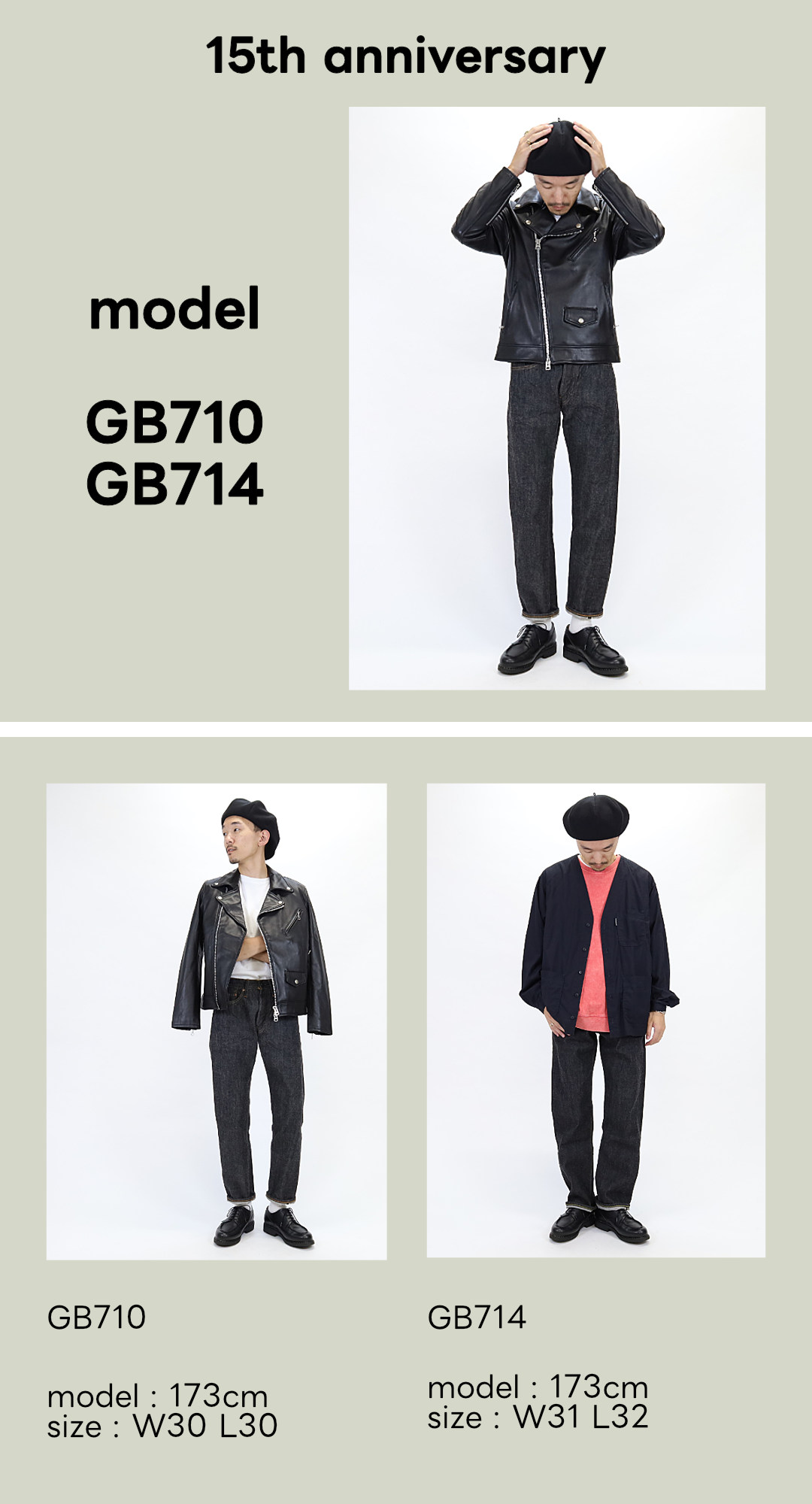 2025年2月頃に発売された、リゾルトが15周年を記念して手掛ける初の「ブラックデニム」。「710」と「714」の2型でリリースされます。それぞれに「GB710」と「GB714」というモデル名が冠されています。定番のブルーデニムとは、また違ったブラックデニムをぜひお試し下さい。