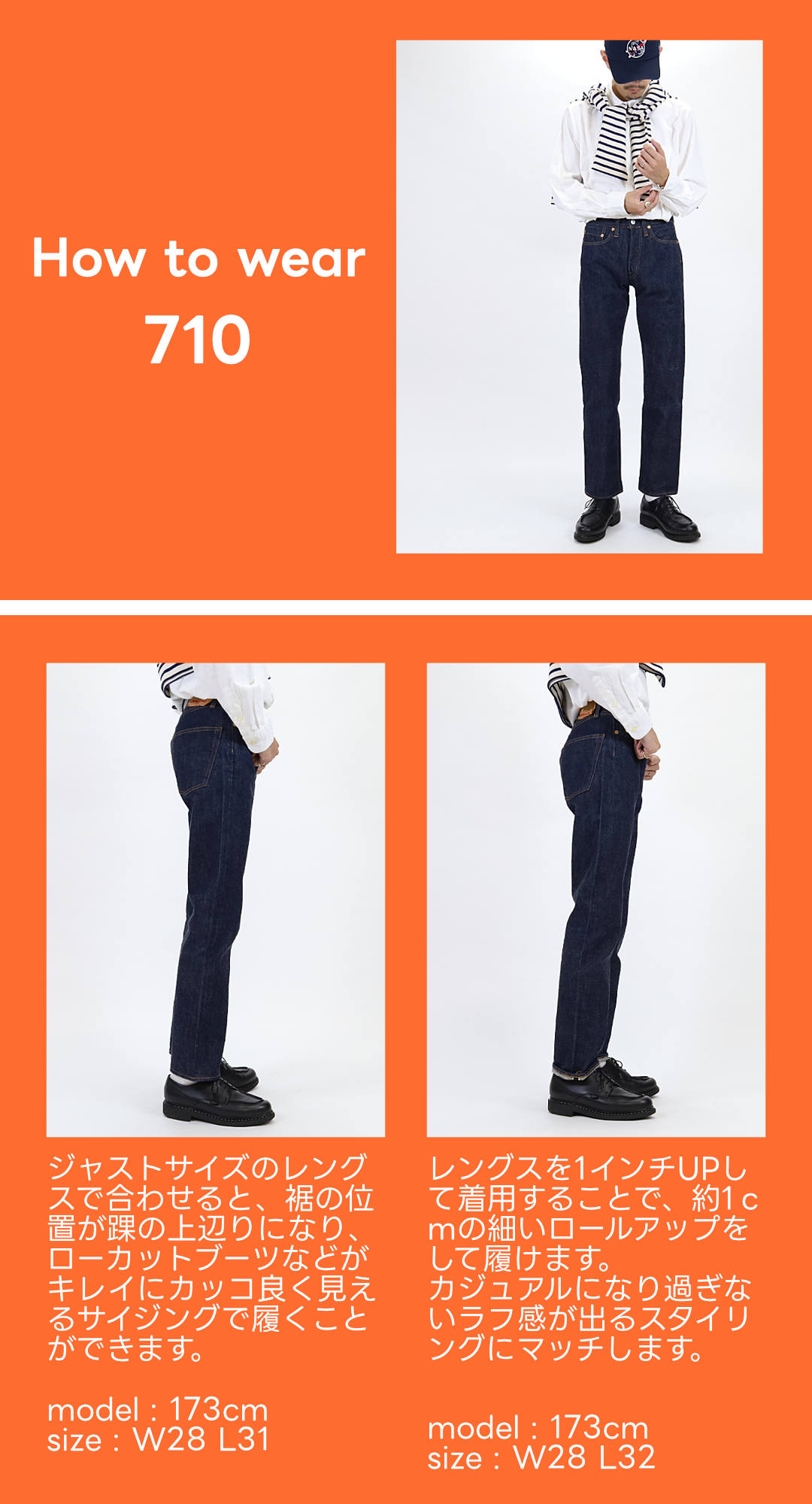 710は細身のストレート。細すぎず太すぎない絶妙な細さで、スッキリとしたシルエット。