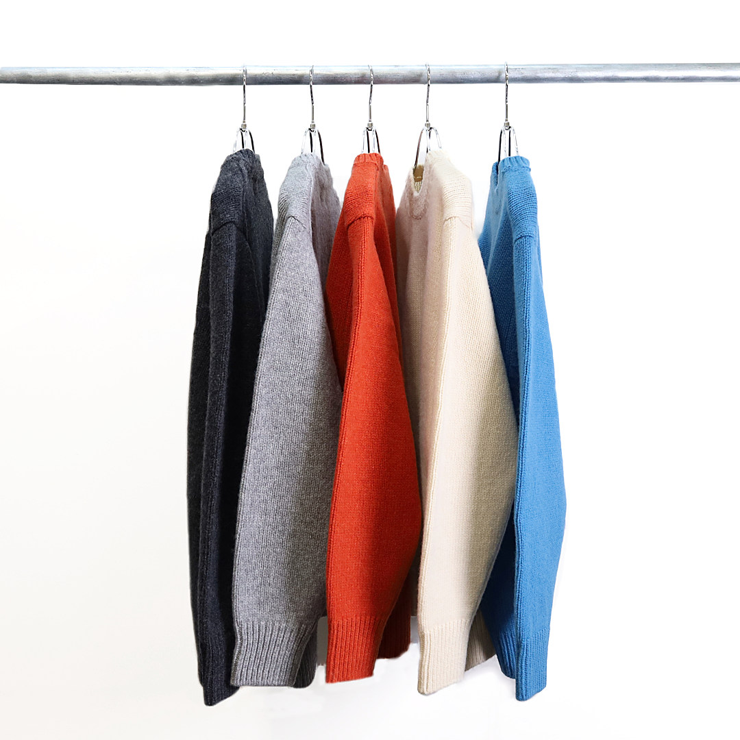 しなやかで軽やかな着心地を実現。重さで肩が凝りにくく、真冬にインナーやコートと着込みたい時につい手に取ってしまうようなニットです。首元や袖のリブのデザインもシャープで美しく、着膨れして見えないので、綺麗に着こなせるのも魅力の一つです。一見するとシンプルなデザインですが、生地感や編み目、色味にニュアンスや深みがあり、他とは一線を画す高級感を醸し出しています。流行に左右されないベーシックなアイテムだからこそ、つくりの良さが際立ち、長く愛用できます。