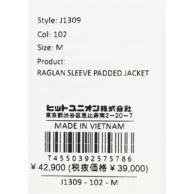ラグランスリーブパデッドジャケット