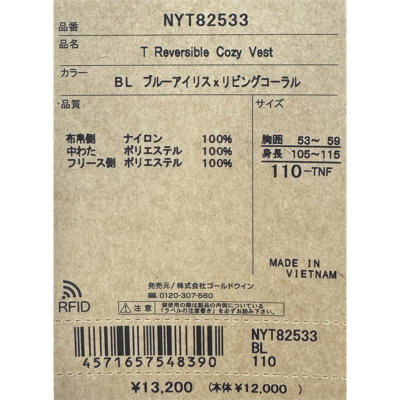 ノースフェイス THE NORTH FACE/トドラーリバーシブルコージーベスト/NYT82533/キッズ【正規取扱】